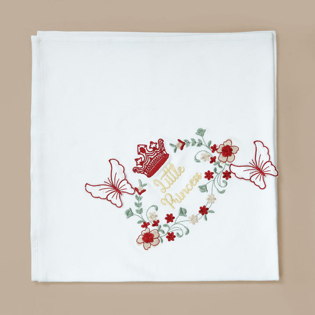 Wrap your little one in royal elegance with this adorable "Little Princess" Newborn Gift Set. Crafted from ultra-soft cotton fabric, this charming 5-piece set includes a cozy romper, matching cap, mittens, and booties all designed for your baby’s comfort and style. The white outfit features exquisite lace detailing on the collar and hat, beautifully accented with deep red satin bows. The embroidered crown and floral motif with the words “Little Princess” add a regal touch, perfect for welcoming your newborn or for memorable photos.