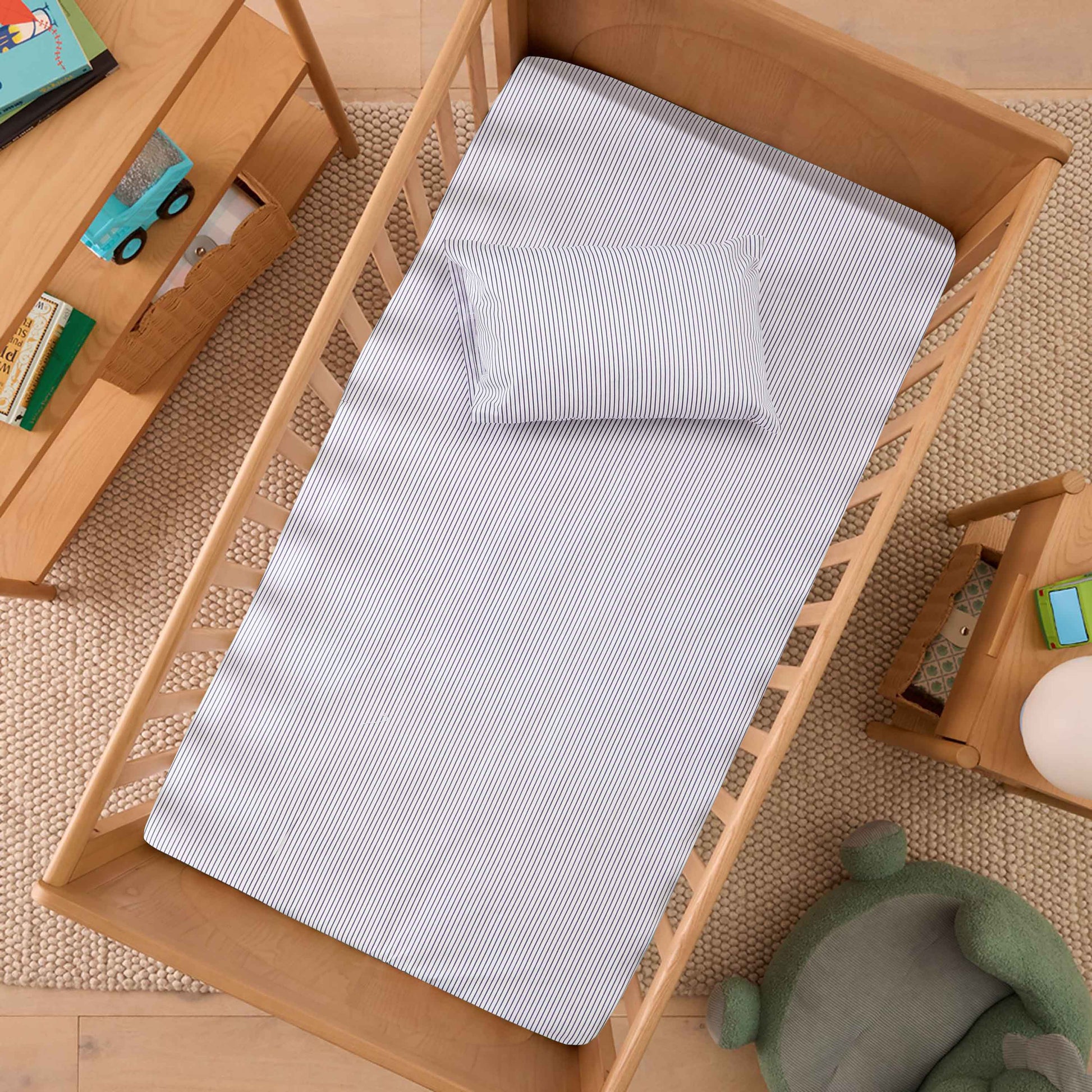 Bring a touch of timeless charm to your baby’s crib with our Sailor Stripes Crib Bedding Set. Designed with classic blue and white stripes print, this elegant yet playful set creates a refreshing nursery atmosphere. Perfect for little dreamers, it adds a stylish touch while keeping your baby snug and comfortable.