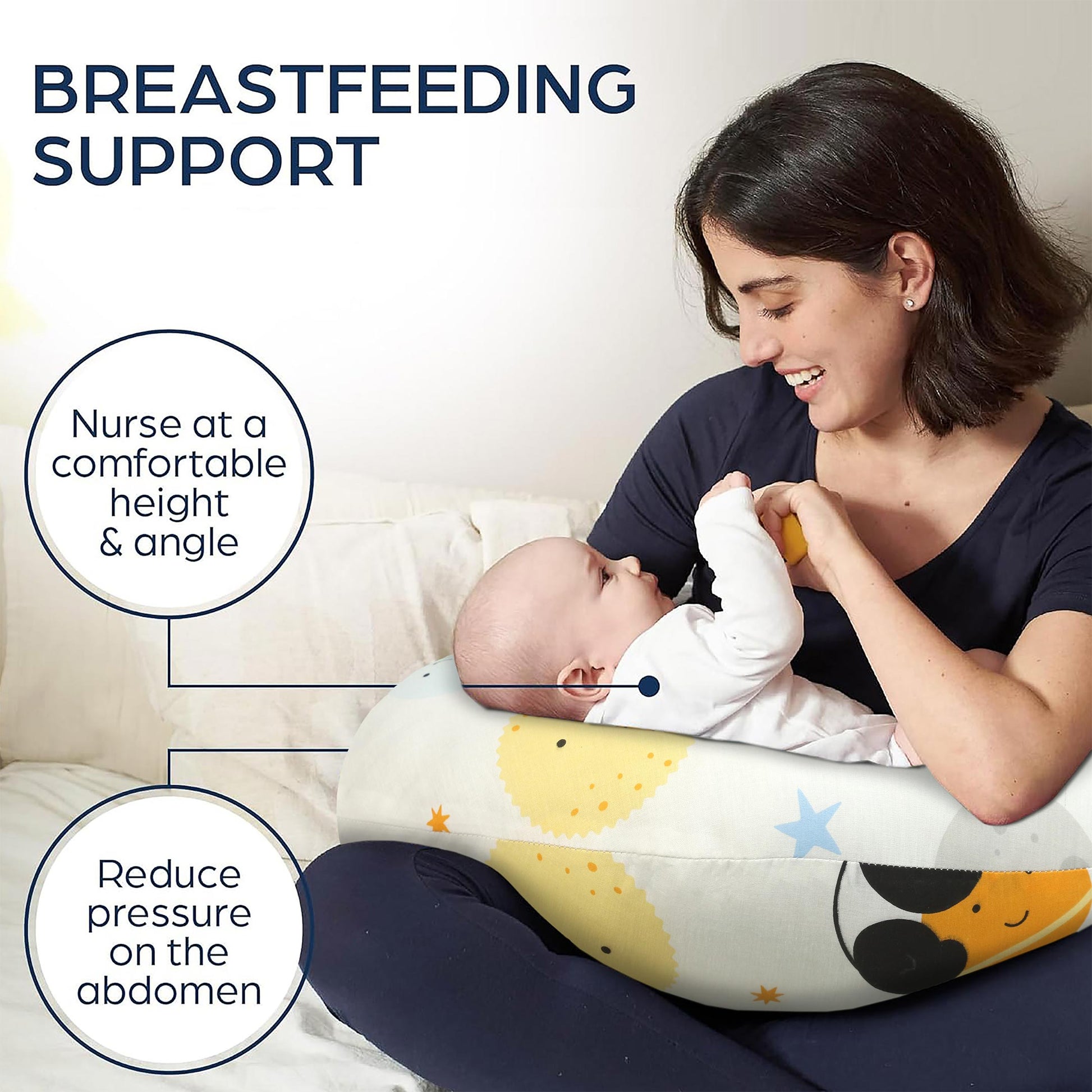 A baby nursing pillow is a special type of pillow designed to help mothers their babies comfortably and correctly. It is usually shaped like a crescent moon. This design helps to reduce strain on the mother's arms and back, making it easier to hold the baby for extended periods of time.