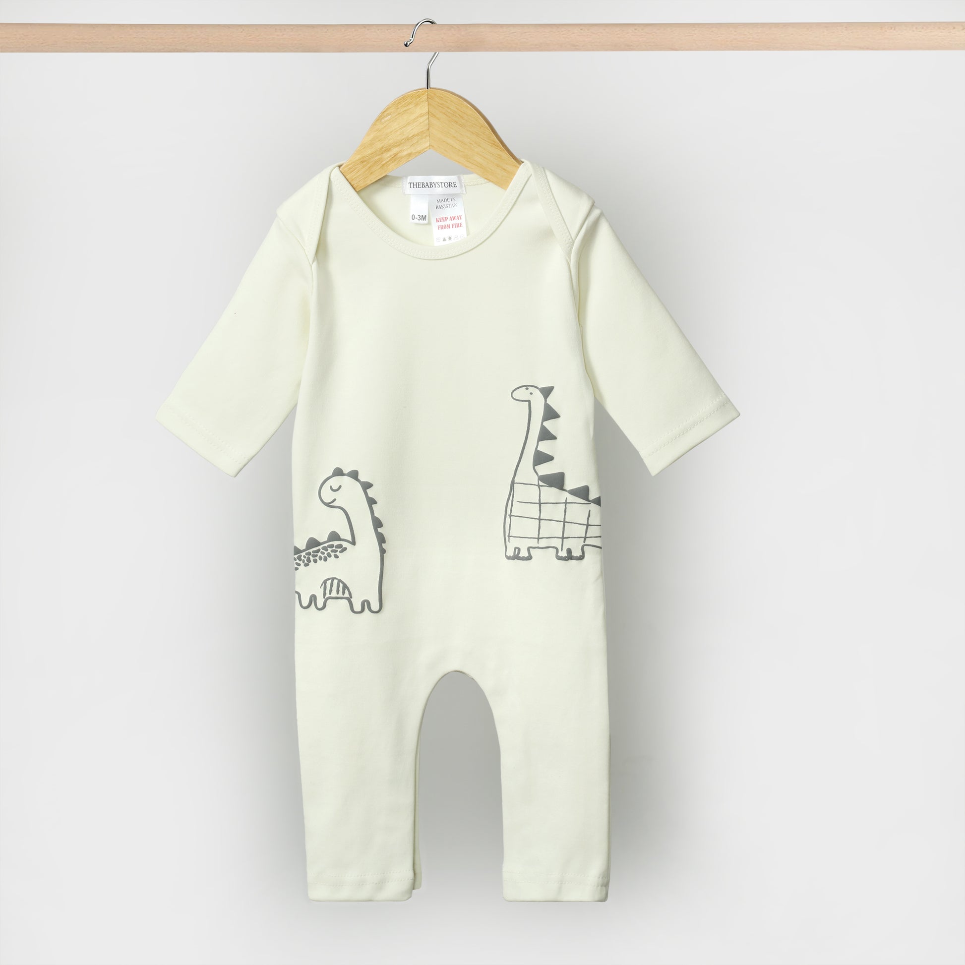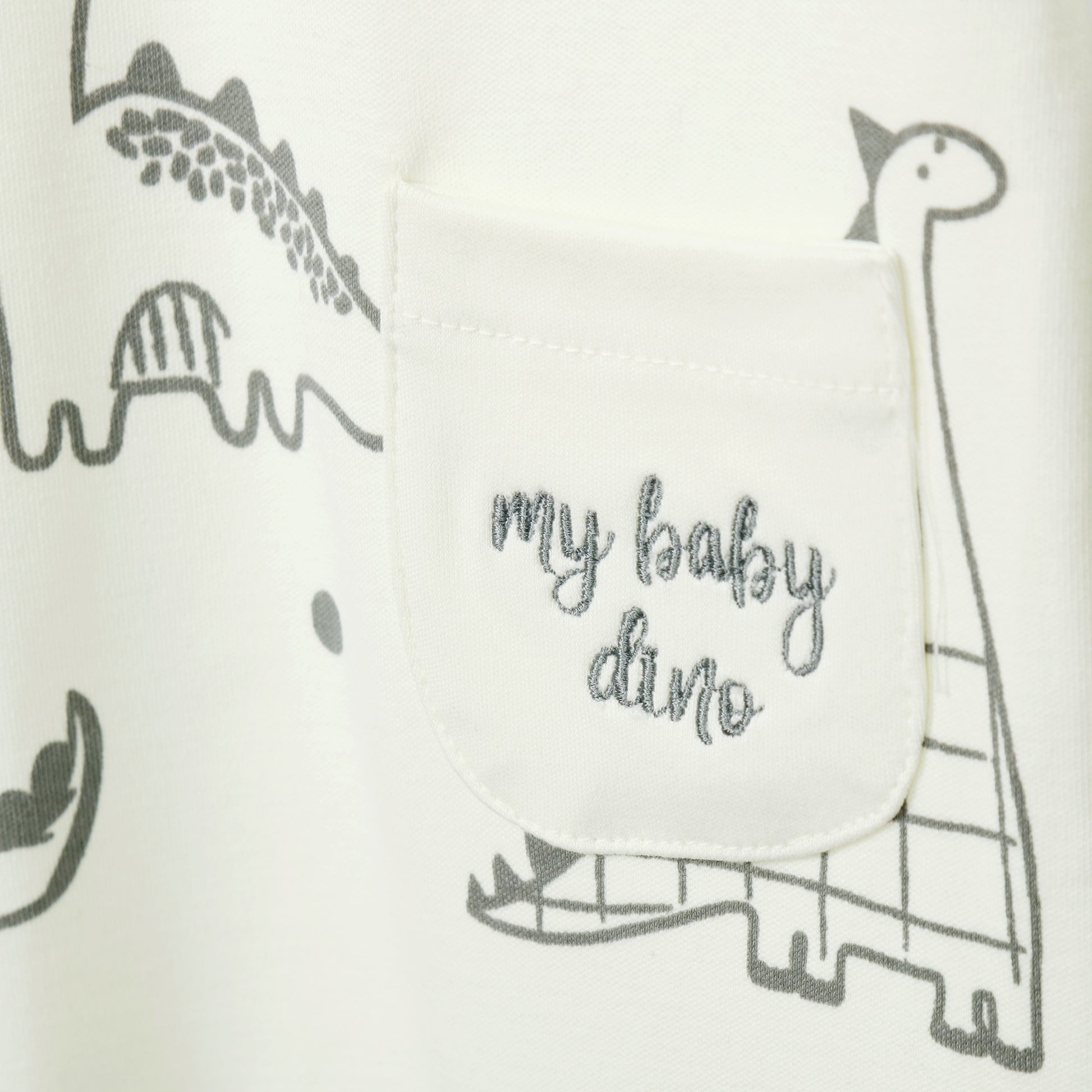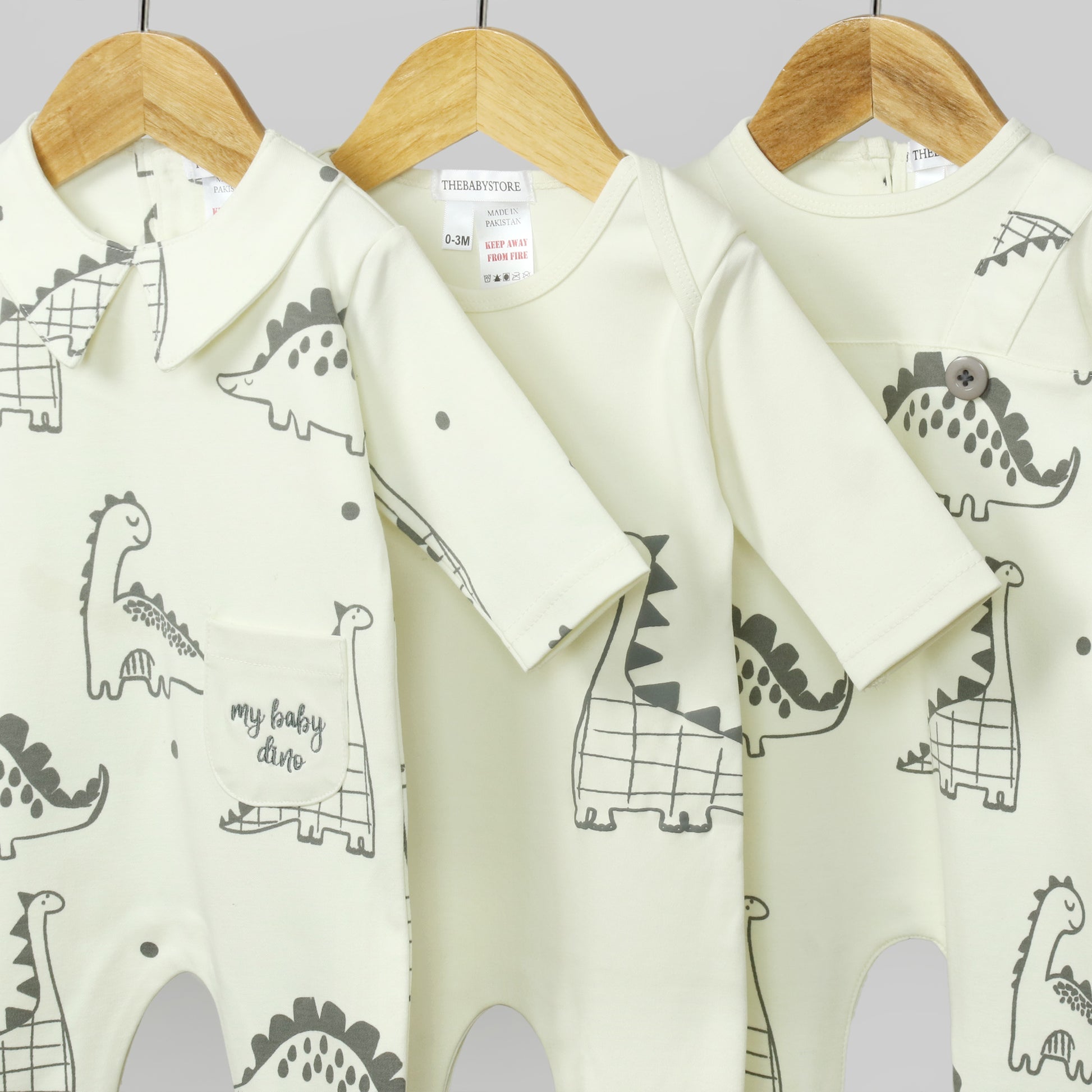 This delightful romper bundle features three ultra-soft rompers crafted from premium fabric that is gentle on delicate skin and perfect for all-day snuggles and adventures. Designed with an off-white base and playful all-over animated dinosaur prints, each romper brings a roar of personality to your baby’s wardrobe.