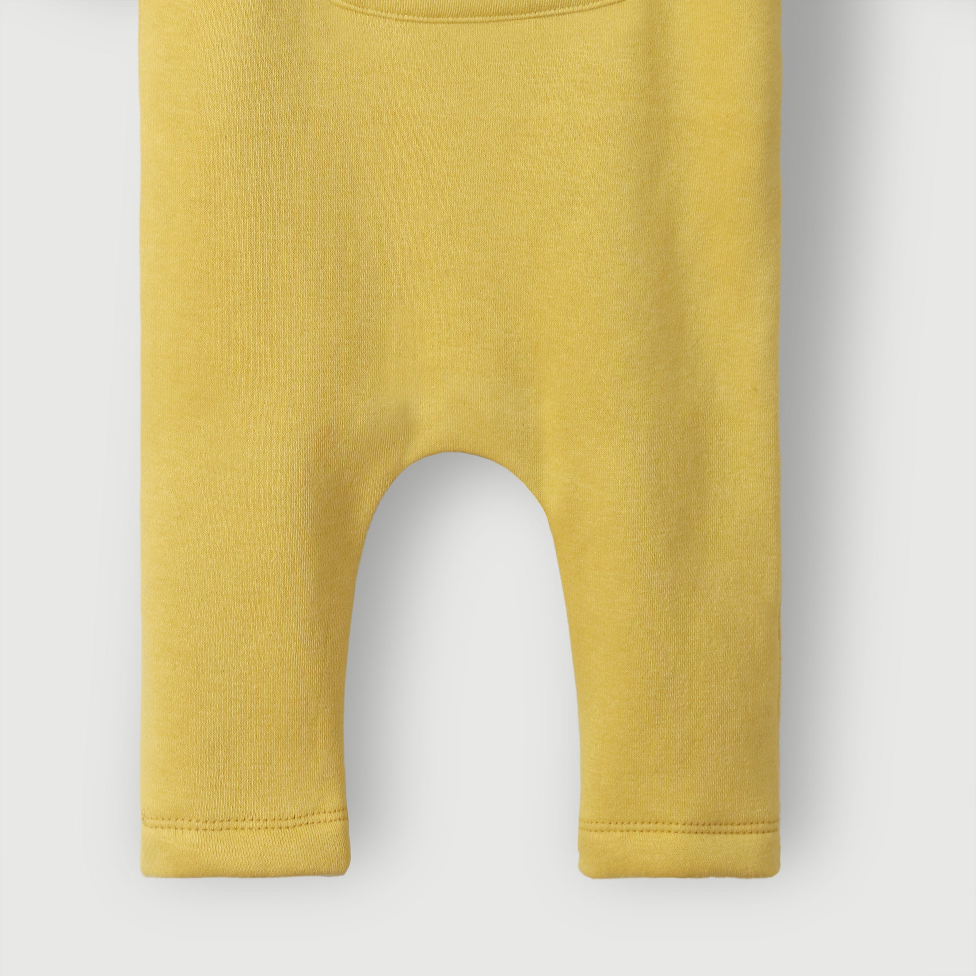 Made from breathable interlock fabric and finished with a knitted fleece dungaree, this romper keeps your little one snug and comfy. The cheerful color, cute print inner layer, and front pocket detail make it perfect for casual outings and daily use.