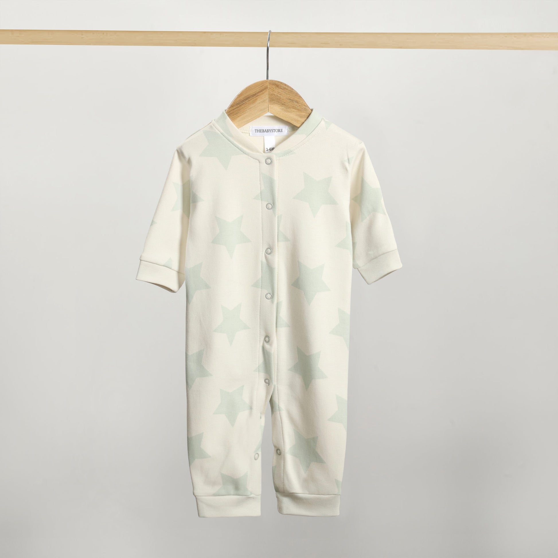 Our star-print baby romper, designed for ultimate comfort and style. Made from soft, breathable interlock, these cozy onesies are perfect for keeping your baby snug and happy all day long. Featuring cute pastel star patterns in pink and gray, they come with easy snap buttons for quick changes. This adorable baby romper features a puff print design, adding a fun and textured look to the outfit. The raised, soft star-shaped puff print on the back enhances both style and comfort. Made using high-quality heat activated ink, the puff print creates a three-dimensional effect.
