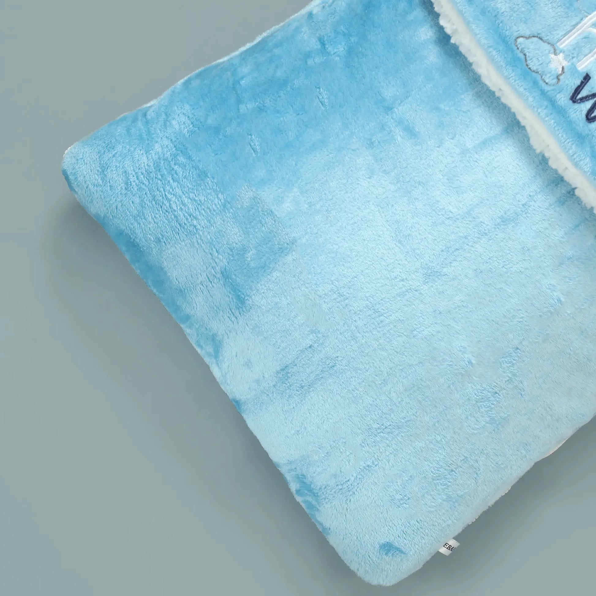A soft and luxurious baby carry nest crafted in plush blue fleece with a cozy white Sherpa -style inner lining. The flap features an embroidered “Hello World” design with star accents, making it a perfect first gift for newborns. Designed to keep infants warm, safe, and comfortable during naps or outings, this sleeping bag is lightweight yet insulated—ideal for colder seasons.