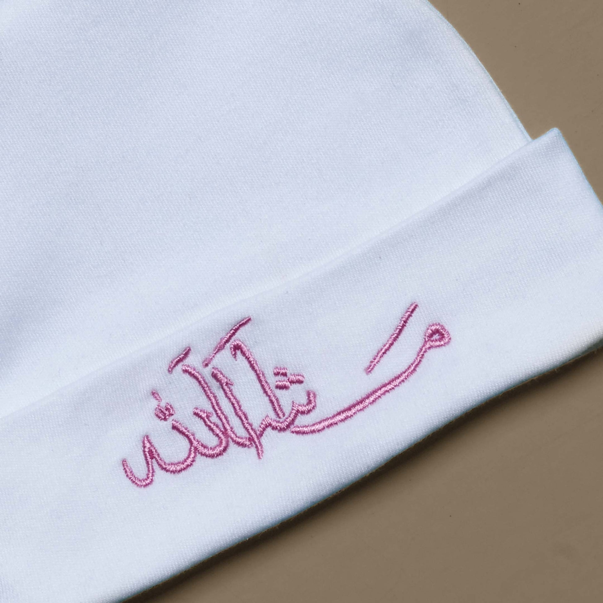 The "Mashallah Embroidered Baby Cap" is a stylish and adorable accessory for your little one. Made with soft and comfortable fabric, this cap features intricate embroidery of the word "Mashallah" in beautiful script. Perfect for keeping your baby's head warm and cozy, while adding a touch of cultural charm to their outfit.